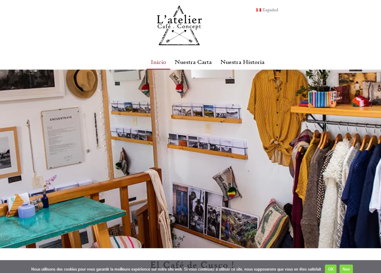 Landing page para la cafeteria “L’atelier café Concept” en Cuzco, Perú.